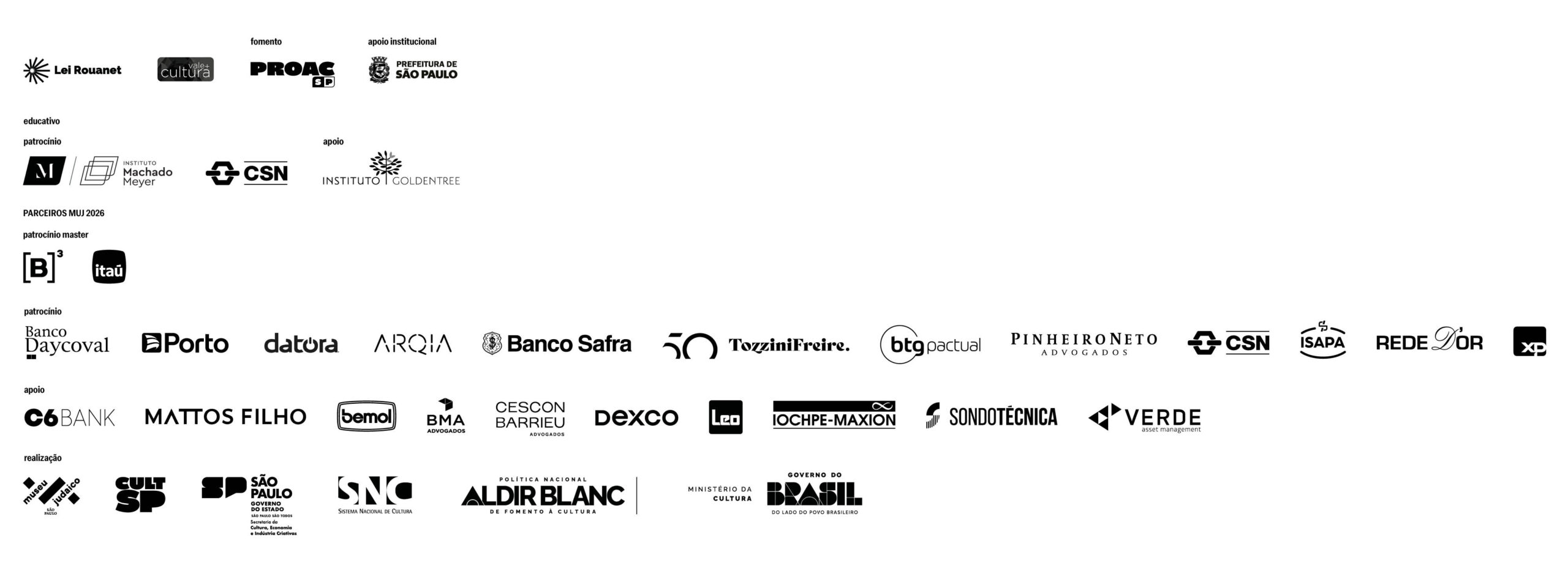 O MUJ conta com patrocinadores Pioneiros e Anuais de 2026, que apoiaram a construção e a manutenção do Museu, respectivamente. Para conhecer os patrocinadores Pioneiros clique aqui.